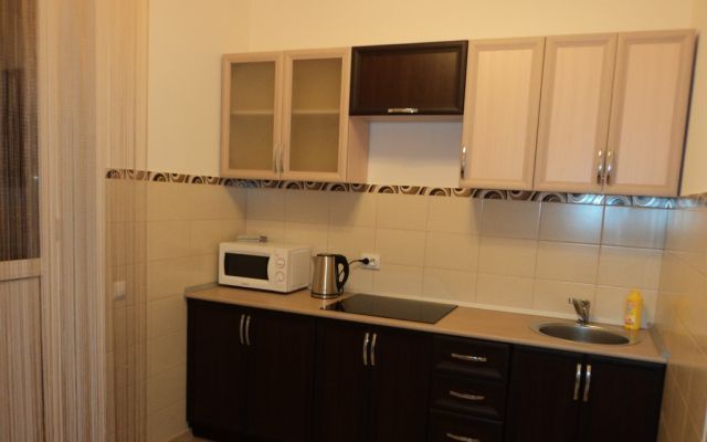 Квартира сдается на ночь, часы, сутки. Расположена в пешей доступности от метро. Квартира отличается особым уютом. Просторная комната с хорошей двуспальной кроватью, удобным раскладывающимся двуспальным диваном, платяной шкаф с зеркалом. На кухне гарнитур под единую столешницу со встроенной бытовой техникой, обеденная группа. Санузел в плитке до потолка – евростандарт, оснащённый современным сантехоборудованием. Вся необходимая бытовая техника: утюг с гладильной доской, плита с вытяжкой. Установлены металлическая дверь и домофон.