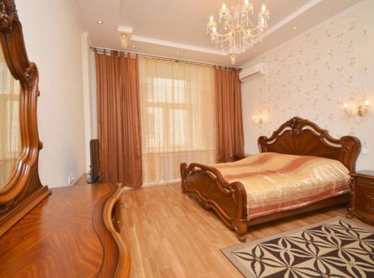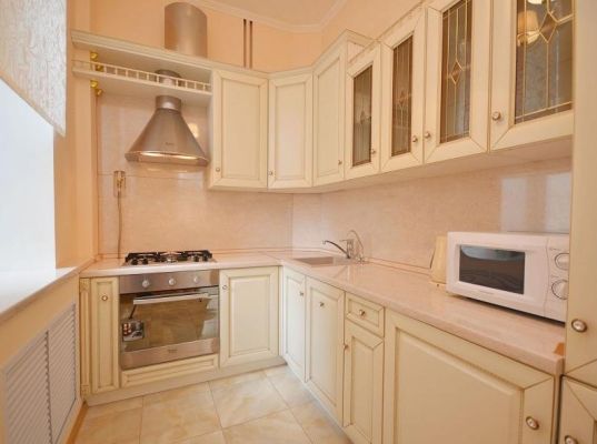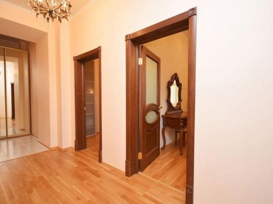 Выполнен евроремонт, гостиная+кухня; три изолированные спальни, отдельный кабинет, санузел; застекленная лоджия; метал.дверь с видеонабл.; дмф, сталинский дом, машиноместо.
