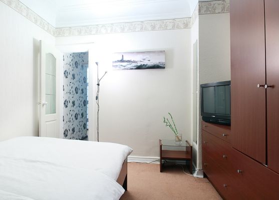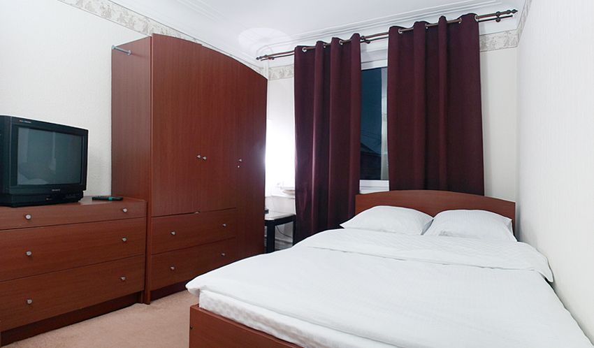 В комнате двуспальная кровать и двуспальный диван (+ еврораскладушка), шкаф-купе.