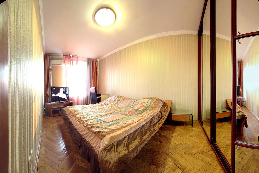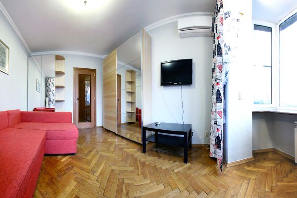 В квартире могут свободно разместиться четыре человека. В каждой комнате ЖК-телевизор и кондиционер.