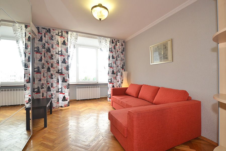 В шаговой доступности: В 5 минутах пешком от метро Смоленская и Киевская. С 9-го этажа 9-ти этажного кирпичного дома, через панорамное эркерное окно, открывается чудесный вид на Смоленскую набережную и центр Москвы.